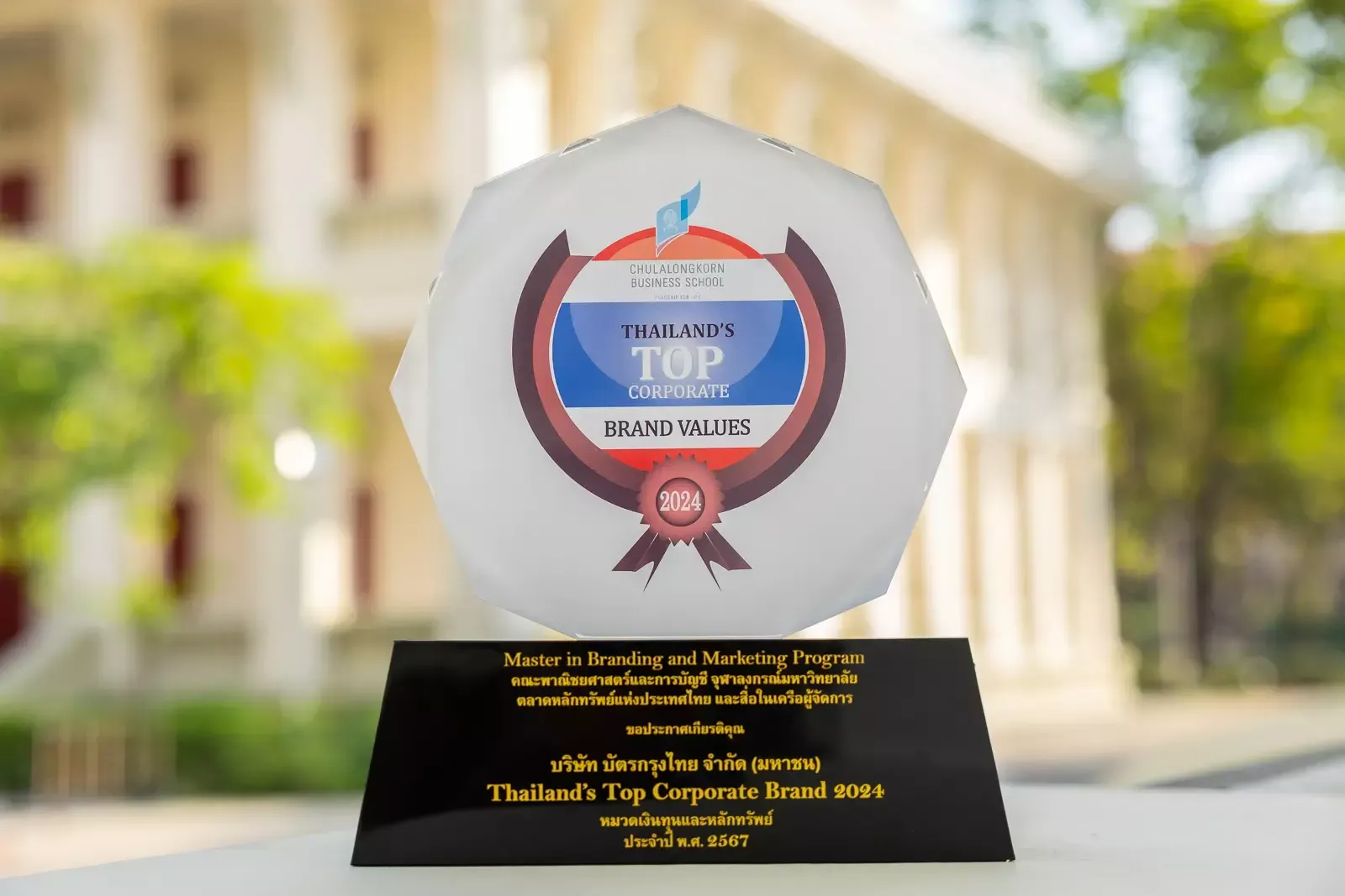 - รับโล่เกียรติยศในฐานะองค์กรที่มีมูลค่าแบรนด์สูงสุดประจำปี 2567 (Thailand’s Top Corporate Brand Value 2024) ในหมวดธุรกิจเงินทุนและหลักทรัพย์ ด้วยมูลค่าแบรนด์ 92,847 ล้านบาท