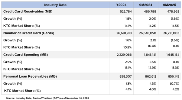 In addition, as a non-bank financial institution under the Krungthai Bank Group, KTC has cooperated with the Bank of Thailand in participating in the “You Fight, We Help” program, both Phase 1 and Phase 2, to support vulnerable borrowers with the potential to recover and resume regular debt repayment. Once borrowers regain their income, they are able to fully settle their debts under the program. The registration for this program closed on September 30, 2025.