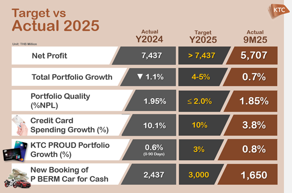 In addition to managing its capital structure, the Group continued to uphold strong financial discipline, as reflected by a low debt-to-equity (D/E) ratio of 1.51 times, a significant decline from 1.64 times in 2Q2025 and 1.78 times in 3Q2024. The improvement was mainly attributed to two key factors: 1) consistent profit accumulation, which strengthened shareholders’ equity; and 2) the economic slowdown resulted in slower portfolio expansion, lowering the need for additional borrowings to support new loans. However, the current D/E ratio remains well below the debt covenant of 10 times, underscoring KTC’s high financial flexibility to support future business expansion and withstand potential economic volatility.
