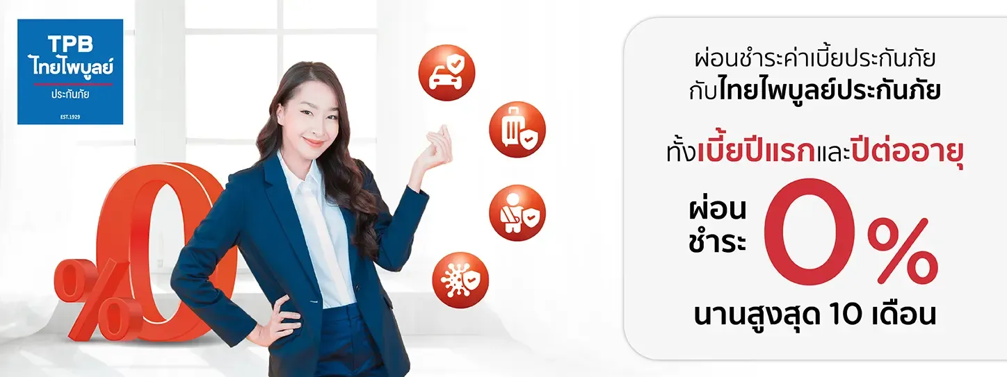 ไทยไพบูลย์ประกันภัย ผ่อนชำระ 0% นานสูงสุด 10 เดือน