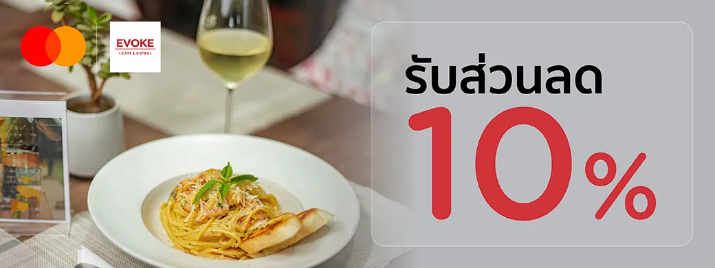 สำหรับอาหารและเครื่องดื่ม เมื่อเลือกชำระด้วยบัตรเครดิต KTC MASTERCARD ทุกประเภทและบัตรกดเงินสด KTC PROUD MASTERCARD ที่ Evoke Cafe and Bistro ประเทศเนปาล