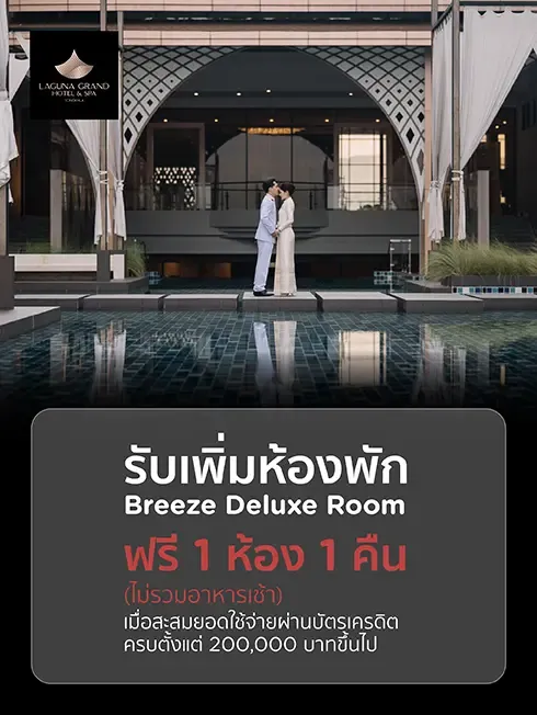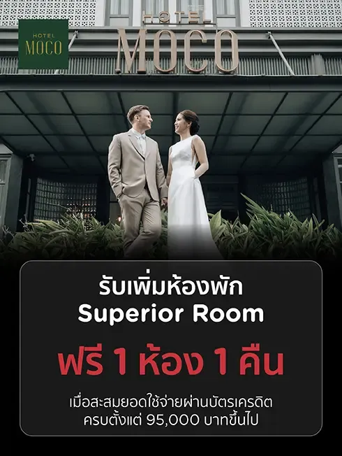 รับเพิ่ม ห้องพักพร้อมอาหารเช้า 2ห้อง เมื่อมียอดใช้จ่ายแพ็กเกจแต่งงาน