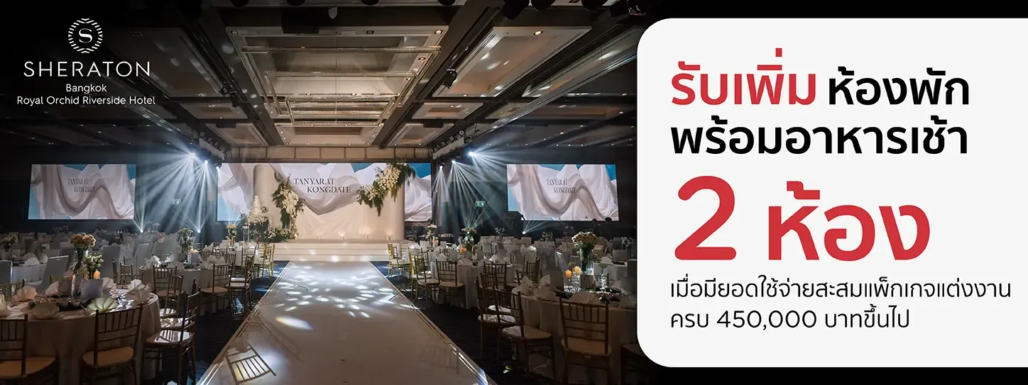 เมื่อใช้จ่ายแพ็คเกจแต่งงานมูลค่า 450,000 บาทสุทธิขึ้นไป (ภายใน 3 เซลส์สลิป)