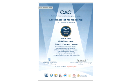 ได้รับการรับรองการต่ออายุการเป็นสมาชิกแนวร่วมต่อต้านคอร์รัปชันของภาคเอกชนไทย (CAC)